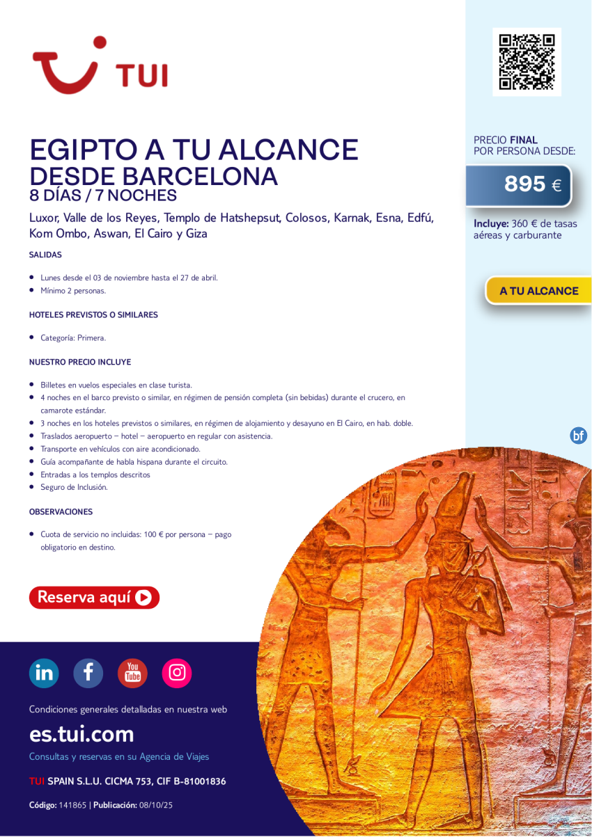 Egipto a tu alcance. 8 días / 7 noches. Salidas lunes. Desde BCN desde 895 €